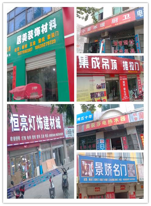 次要集中:华美家居建材城、名优建材城、棋友灯饰家居建材城、世纪亚泰全球家居广场、新鹏南、狂药大道、文化、顺城西街、商都、滨河大道。